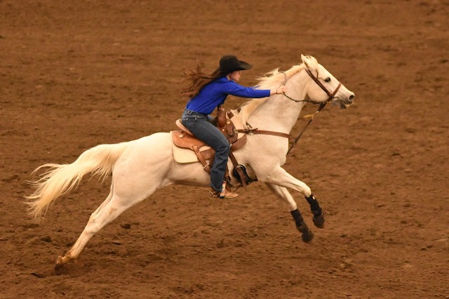 Okay, it's hard to be original with barrel racing. But you might notice this one is taken from the stands. I took a bunch more from the edge of the arena (I'll get to them) but I always like the "clean" background this angle gives me. No clutter. No figures, neon tape or trashcans in the background. Just dirt.